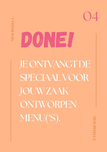 Menu by KELLA. ontwerpt menukaarten die méér doen dan alleen gerechten tonen. We combineren slim design met een sterke uitstraling, zodat jouw menu de sfeer en kwaliteit van je zaak perfect weerspiegelt - fysiek én digitaal.